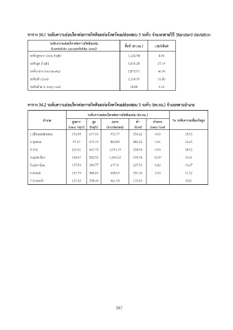 ตาราง 34.1 ระดับความอ่อนไหวต่อการเกิดดินถล่มจังหวัดแม่ฮ่องสอน 5 ระดับ จำแนกตามวิธี Standard deviation