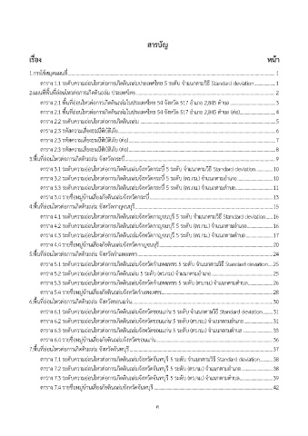 ตาราง 2.1 พื้นที่อ่อนไหวต่อการเกิดดินถล่มในประเทศไทย 54 จังหวัด 517 อำเภอ 2,845 ตำบล (ต่อ).................................. 4