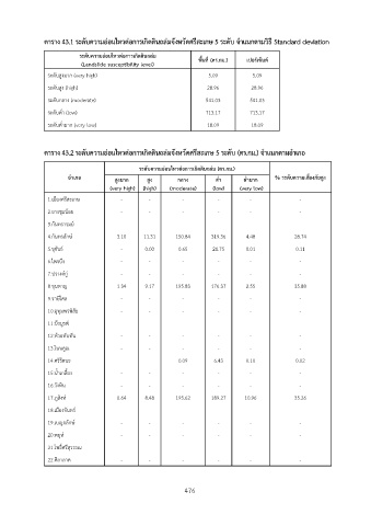 ตาราง 43.1 ระดับความอ่อนไหวต่อการเกิดดินถล่มจังหวัดศรีสะเกษ 5 ระดับ จำแนกตามวิธี Standard deviation