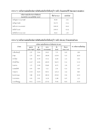 ตาราง 7.1 ระดับความอ่อนไหวต่อการเกิดดินถล่มจังหวัดจันทบุรี 5 ระดับ จำแนกตามวิธี Standard deviation