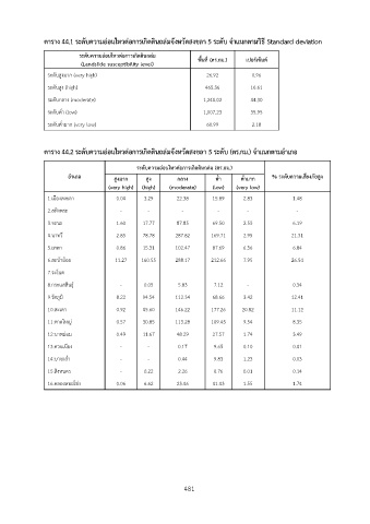 ตาราง 44.1 ระดับความอ่อนไหวต่อการเกิดดินถล่มจังหวัดสงขลา 5 ระดับ จำแนกตามวิธี Standard deviation
