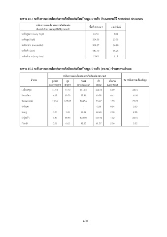 ตาราง 45.1 ระดับความอ่อนไหวต่อการเกิดดินถล่มจังหวัดสตูล 5 ระดับ จำแนกตามวิธี Standard deviation