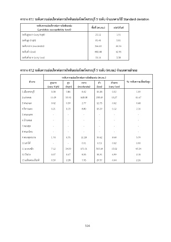 ตาราง 47.1 ระดับความอ่อนไหวต่อการเกิดดินถล่มจังหวัดสระบุรี 5 ระดับ จำแนกตามวิธี Standard deviation