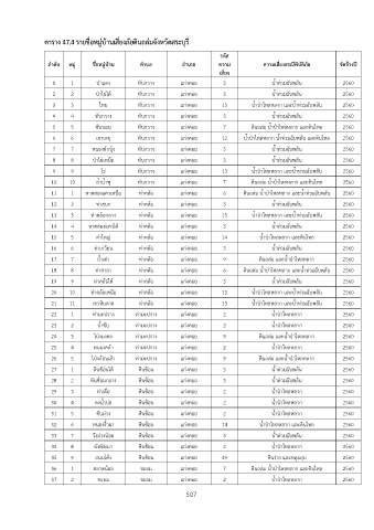 ตาราง 47.4 รายชื่อหมู่บ้านเสี่ยงภัยดินถล่มจังหวัดสระบุรี