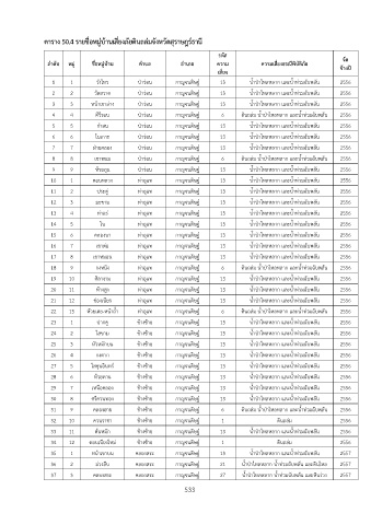 ตาราง 50.4 รายชื่อหมู่บ้านเสี่ยงภัยดินถล่มจังหวัดสุราษฎร์ธานี