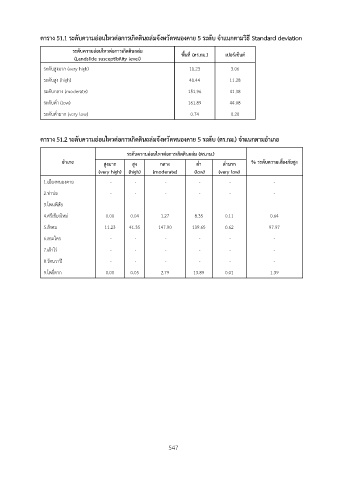 ตาราง 51.1 ระดับความอ่อนไหวต่อการเกิดดินถล่มจังหวัดหนองคาย 5 ระดับ จำแนกตามวิธี Standard deviation