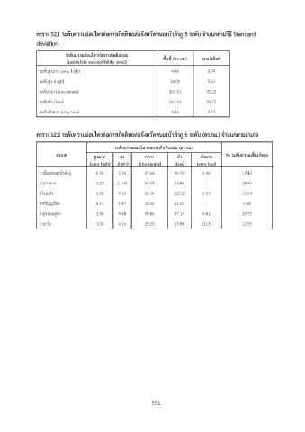 ตาราง 52.1 ระดับความอ่อนไหวต่อการเกิดดินถล่มจังหวัดหนองบัวลำภู 5 ระดับ จำแนกตามวิธี Standard