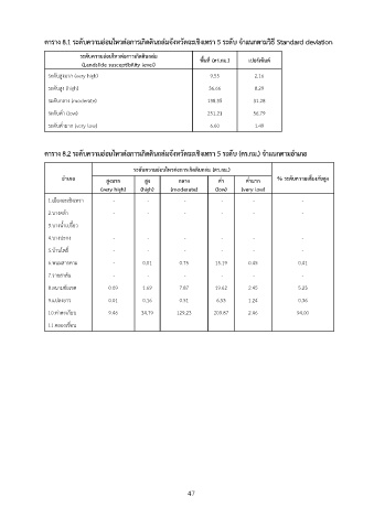 ตาราง 8.1 ระดับความอ่อนไหวต่อการเกิดดินถล่มจังหวัดฉะเชิงเทรา 5 ระดับ จำแนกตามวิธี Standard deviation