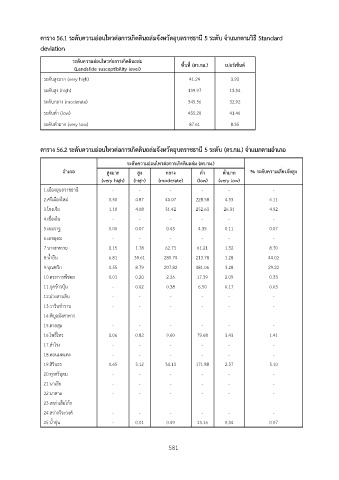 ตาราง 56.1 ระดับความอ่อนไหวต่อการเกิดดินถล่มจังหวัดอบลราชธานี 5 ระดับ จำแนกตามวิธี Standard
