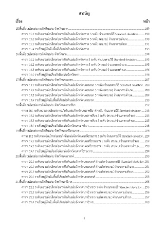 ตาราง 15.1 ระดับความอ่อนไหวต่อการเกิดดินถล่มจังหวัดตราด 5 ระดับ จำแนกตามวิธี Standard deviation ............ 190