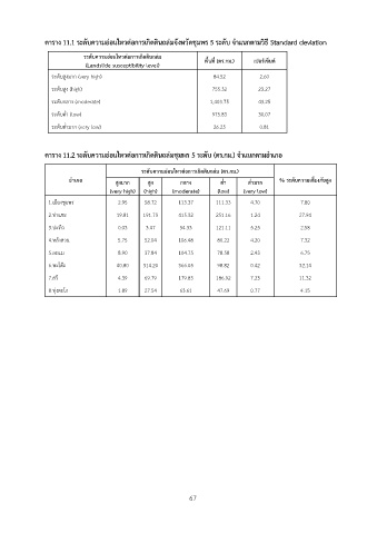 ตาราง 11.1 ระดับความอ่อนไหวต่อการเกิดดินถล่มจังหวัดชุมพร 5 ระดับ จำแนกตามวิธี Standard deviation