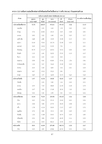 ตาราง 12.3 ระดับความอ่อนไหวต่อการเกิดดินถล่มจังหวัดเชียงราย 5 ระดับ (ตร.กม.) จำแนกตามตำบล