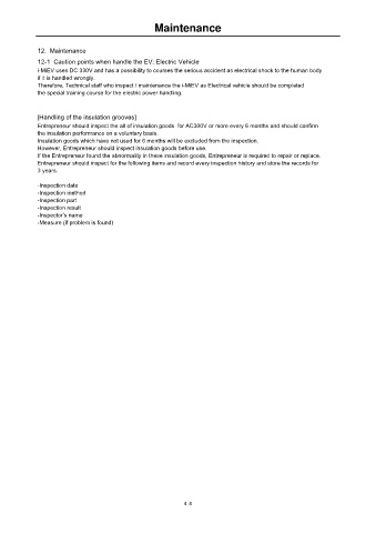 12-1 Caution points when handle the EV: Electric Vehicle