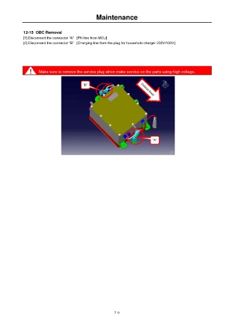 [2] Disconnect the connector “B” [Charging line from the plug for household charger 200V/100V]
