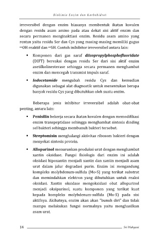 ─OH reaktif dan ─SH. Contoh inihibitor irreversibel antara lain: