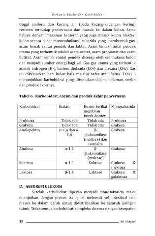 Tabel 6. Karbohidrat, enzim dan produk akhir pencernaan