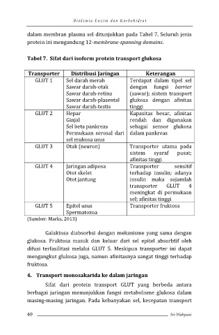 Tabel 7. Sifat dari isoform protein transport glukosa