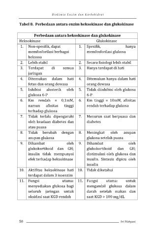 Tabel 8. Perbedaan antara enzim heksokinase dan glukokinase