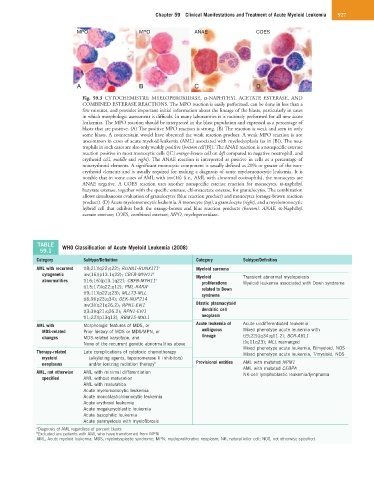 Fig. 59.3 CYTOCHEMISTRY: MYELOPEROXIDASE, α-NAPHTHYL ACETATE ESTERASE, AND