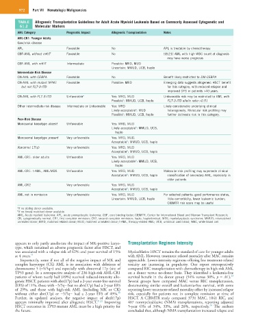 TABLE Allogeneic Transplantation Guidelines for Adult Acute Myeloid Leukemia Based on Commonly Assessed Cytogenetic and