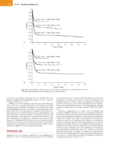 Fig. 62.3 EVENT-FREE SURVIVAL (A) AND OVERALL SURVIVAL (B) FOR PATIENTS WITH