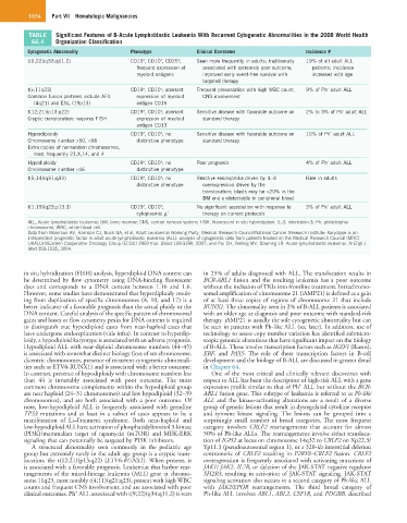TABLE Significant Features of B-Acute Lymphoblastic Leukemia With Recurrent Cytogenetic Abnormalities in the 2008 World Health