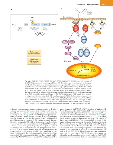 Fig. 68.4 JAK2V617F SIGNALING IN MYELOPROLIFERATIVE DISORDERS. (A) Structure of