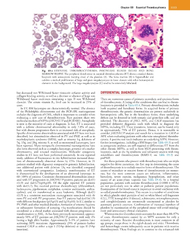 MARROW BIOPSY. The peripheral blood smear in essential thrombocythemia (ET) shows a marked throm-