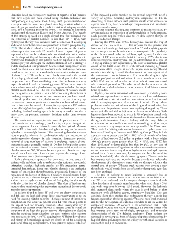 hydroxyurea-treated high-risk patients has been reported to be 1.66% nonleukemogenic. Hydroxyurea can be administered at a dose of