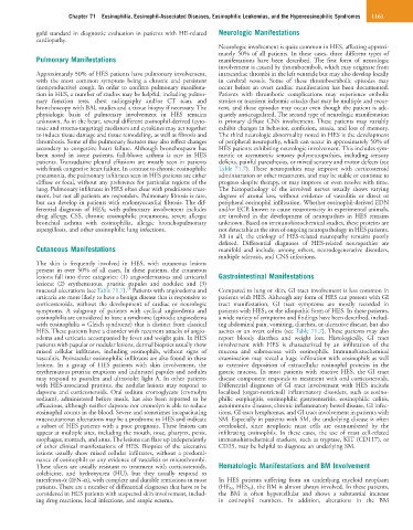 physiologic basis of pulmonary involvement in HES remains quately anticoagulated. The second type of neurologic manifestation