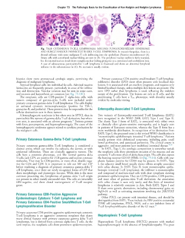 T-cells, lack CD5, are positive for TCR-gamma and express cytotoxic the homing receptor CD103 (HML-1) (Fig. 73.14). Cells with ana-
