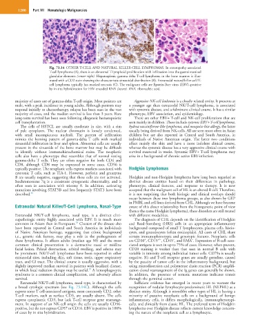 positive, but do not express CD57 or CD16. EBV is positive in 100% lymphoma over Hodgkin disease reflects current knowledge concern-