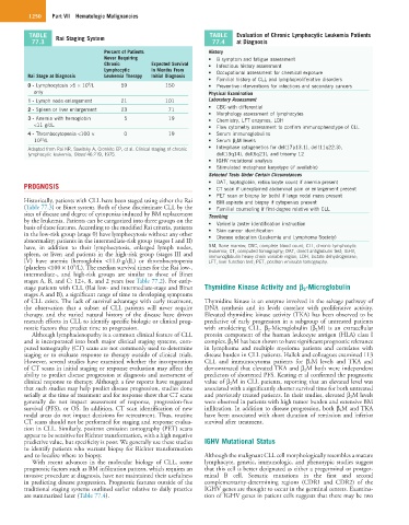 (Table 77.3) or Binet system. Both of these discriminate CLL by the • Familial counseling if first-degree relative with CLL