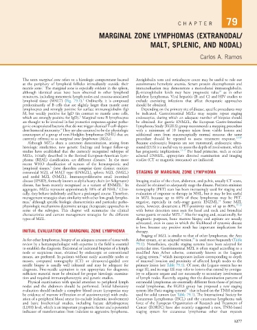 to establish the diagnosis. Excisional or incisional biopsies of a lymph particular sites. Gastrointestinal MZL is often staged according to a