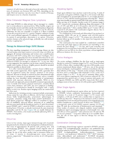 advanced-stage ENMZL, have reported overall response rates of include CVP (cyclophosphamide, vincristine, and prednisone) fol-