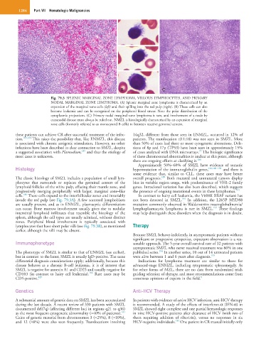 NODAL MARGINAL ZONE LYMPHOMA. (A) Splenic marginal zone lymphoma is characterized by an