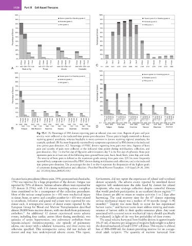 Fig. 95.1 (A) Percentage of BM donors reporting pain at selected sites over time. Reports of pain and pain