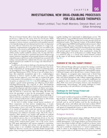 the patient are unknown (Table 96.1). An IND-enabling pre-clinical be applied to alter or modify a cell to achieve a desired therapeutic