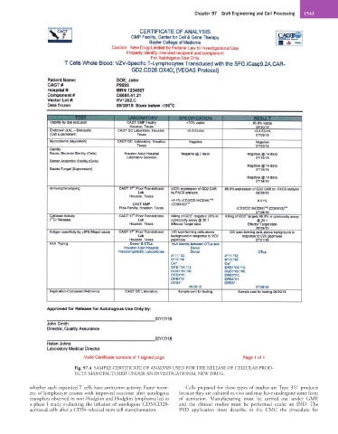 Fig. 97.4 SAMPLE CERTIFICATE OF ANALYSIS USED FOR THE RELEASE OF CELLULAR PROD-