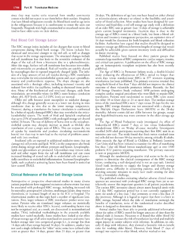 tations. First, larger volumes of RBC transfusion predict worse out- RBC storage, beyond which the risks of transfusion outweigh the