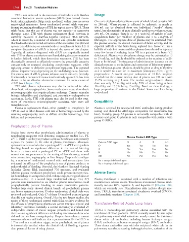 Neither large study showed clinical benefit of prophylactic plasma which are currently rare. Noninfectious risks include allergic reac-