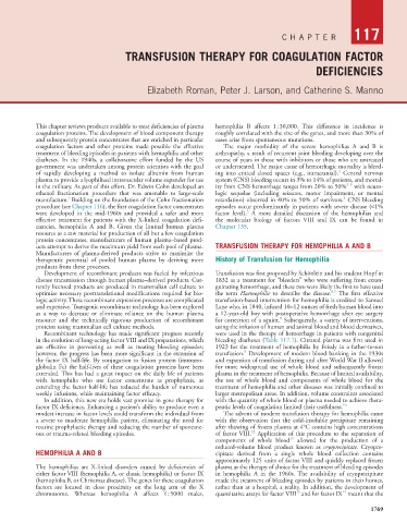 in the evolution of long-acting factor VIII and IX preparations, which bleeding diatheses (Table 117.1). Citrated plasma was first used in