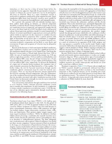 days to months after transfusion. As with bacteremia, it is important TABLE Transfusion-Related Acute Lung Injury