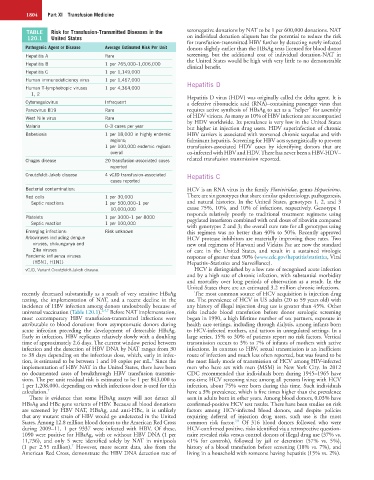 universal vaccination (Table 120.1). 3,4,7 Before NAT implementation, risks include blood transfusion before donor serologic screening