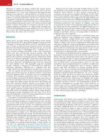 red cell units stored for up to 42 days. Babesia transmission has been Phlebotomine (Old World) and Lutzomyia (New World) sand-fly