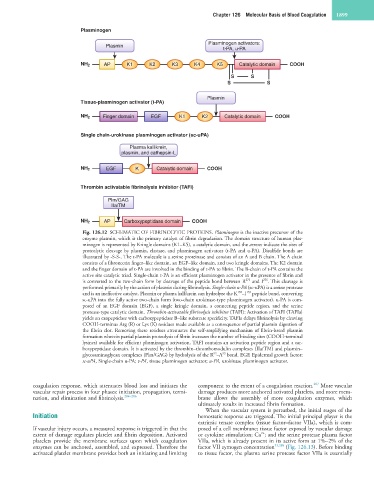 Fig. 126.12 SCHEMATIC OF FIBRINOLYTIC PROTEINS. Plasminogen is the inactive precursor of the