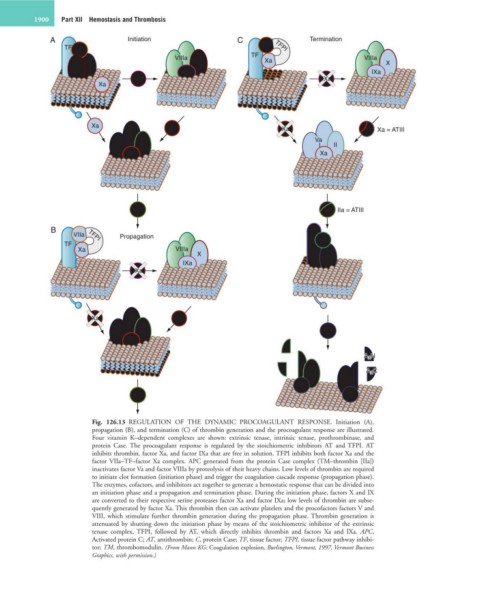 Fig. 126.13 REGULATION OF THE DYNAMIC PROCOAGULANT RESPONSE. Initiation (A),