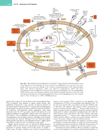 Fig. 130.1 MECHANISM OF INHIBITION OF PLATELET FUNCTION BY VARIOUS DRUGS. Some