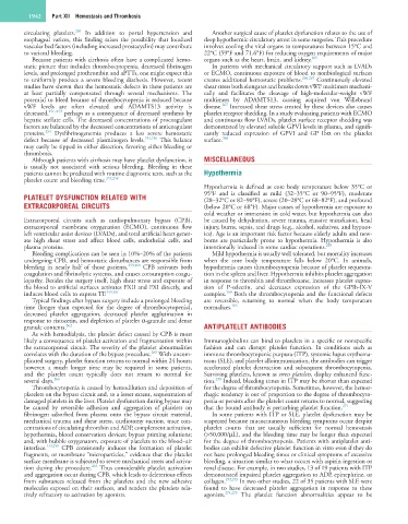 bleeding in nearly half of those patients. 259,260 CPB activates both hypothermia causes thrombocytopenia because of platelet sequestra-
