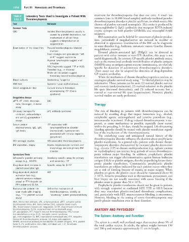 factor 4; PT, prothrombin time; RBC, red blood cell; TTP, thrombotic the total cardiac output. In adults, the spleen weighs between 150
